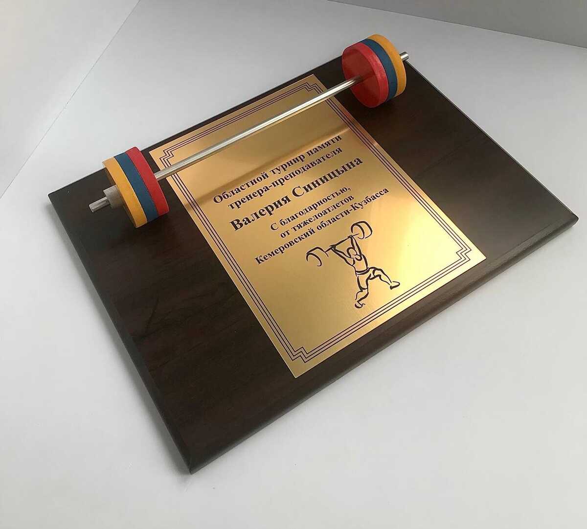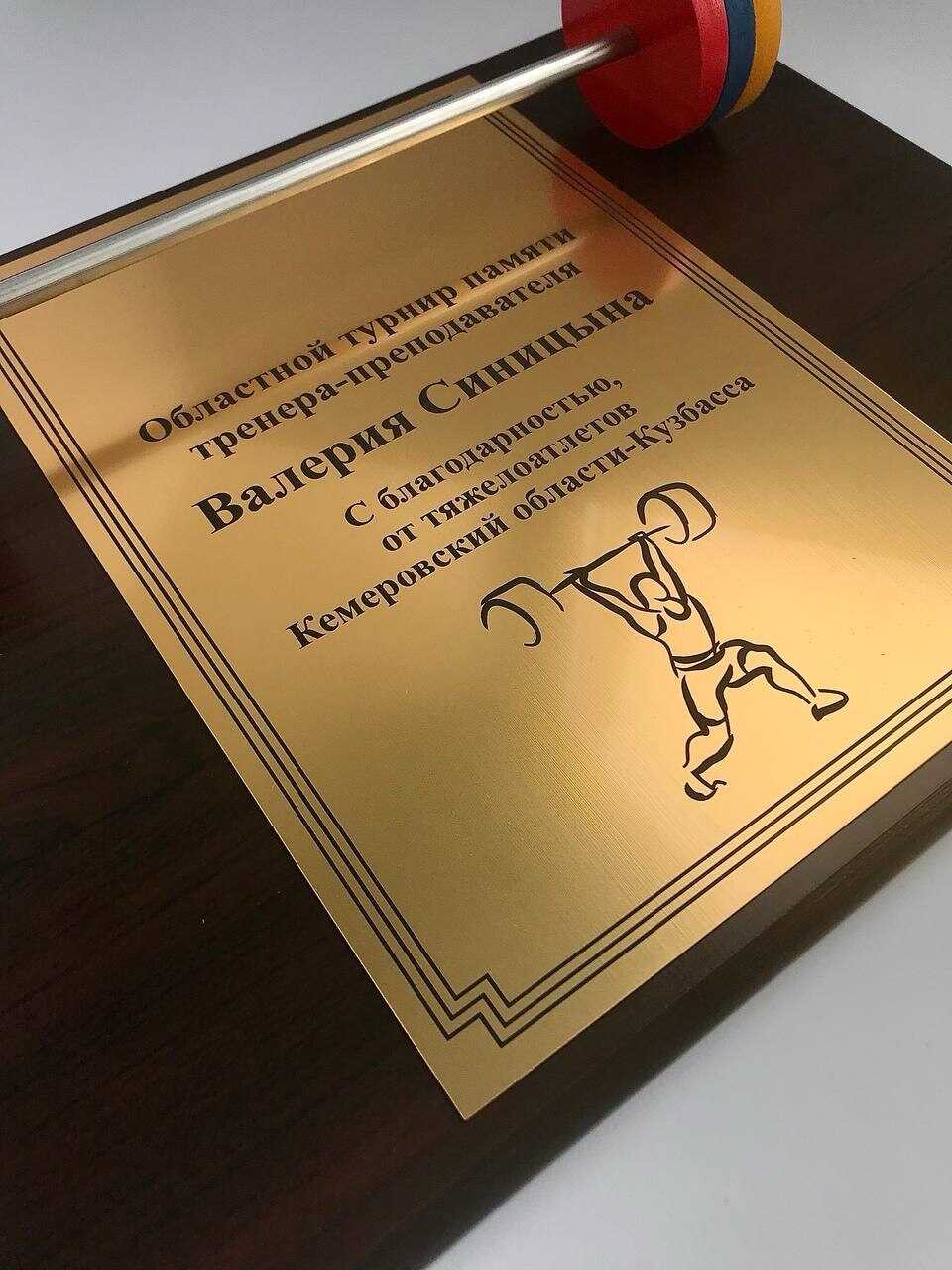 Плакетка выполнена из золотого пластика на деревянном основании. Для обеспечения долговечности и сохранения безупречного внешнего вида использовалась высококачественная древесина.